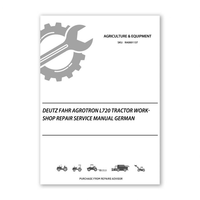 Are you looking for a reliable and comprehensive repair and service manual for your Deutz Fahr AGROTRON L720 Tractor? Look no further! This Workshop Repair Service Manual German is the perfect solution for you. This manual is your number one source for repair and service information, specifically written for the do-it-yourself as well as the experienced mechanics worldwide. It contains detailed illustrations and step-by-step instructions with the necessary diagrams or pictures to guide you through each repair and maintenance procedure. This manual is written in German and is compatible with all Windows and Mac operating systems. With the file, you can print unlimited copies and view it on your mobile phone, iPad, Note, or Computer. You will receive a link after payment. This manual may contain attachments and optional equipment that are not available in your area. Please consult your local distributor for those items you may require. Materials and specifications are subject to change without notice. WARNING: Unsafe Use of this machine may cause serious injury or Death. Operators and maintenance personnel must read this manual before operating or maintaining this machine. This manual should be kept near the machine for reference and periodically reviewed by all personnel who will come into contact with it. Having this Deutz Fahr AGROTRON L720 Tractor Workshop Repair Service Manual German will save you time and money. It is an inexpensive way to keep your machine working properly. Don't wait any longer and get your manual now!