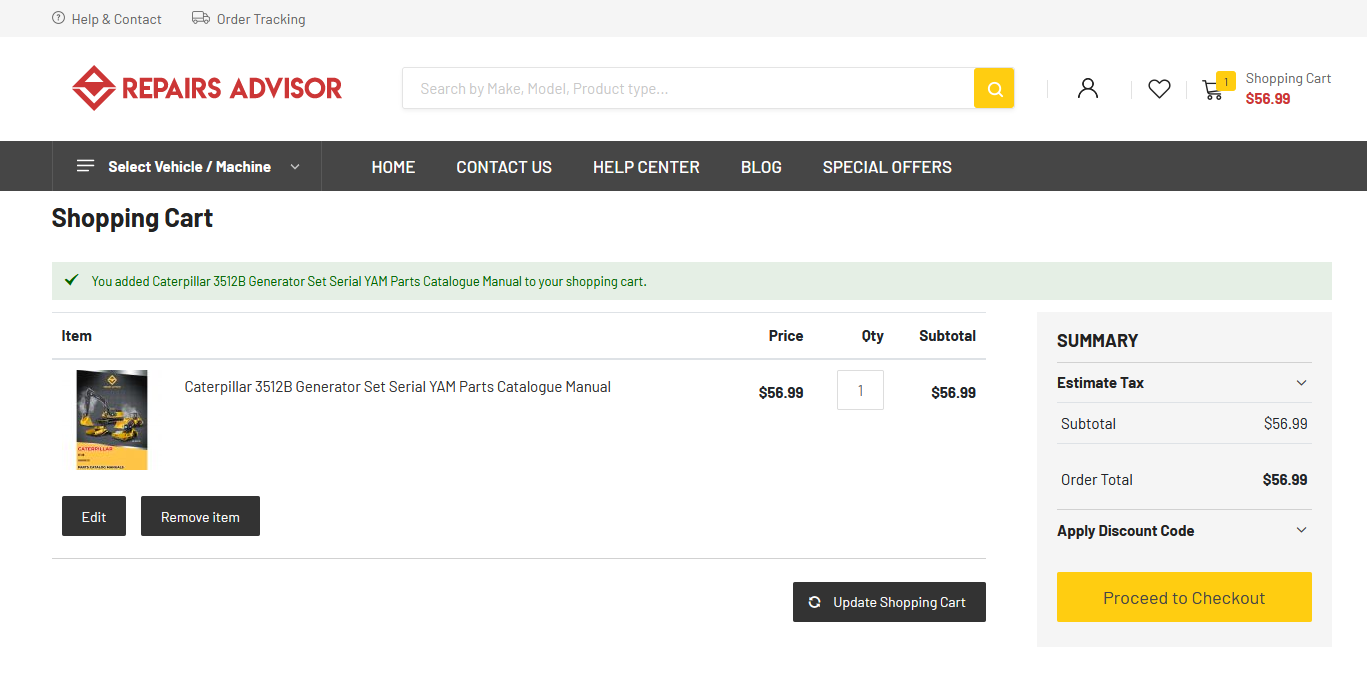 Step 2: At Cart page, you can check the items you have added. You also can add a discount code if you have.