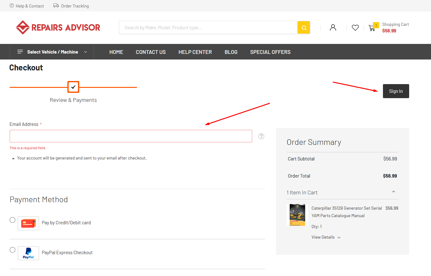 Step 3: Are you returning customer? Press Sign in button to login your account.